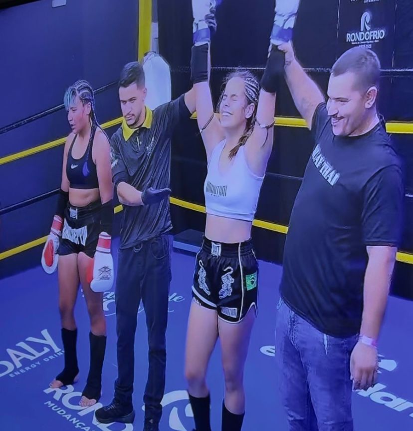 A jovem atleta, com apenas 14 anos, impressiona ao vencer sua primeira competição de Muay Thai em um evento de grande destaque no Sul do Brasil.